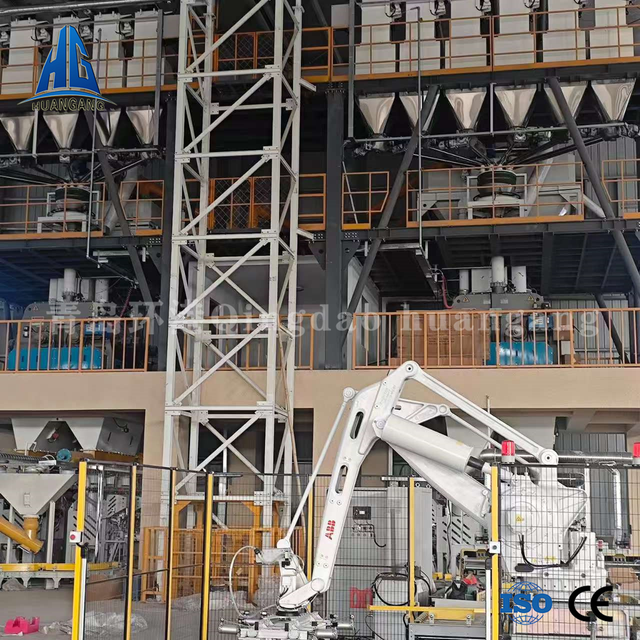 To maintain consistency in formulation, the automatic weighing and batchingunit ensures precise dosing before materials enter the high-efficiency mixingsystem, where they are blended uniformly. The finished gypsum-basedproducts are then processed through an intelligent packaging system, followedby an automated palletizing unit that efficiently stacks the packaged materials.The entire process is fully automated, ensuring accuracy, efficiency, andadaptability to different production needs.